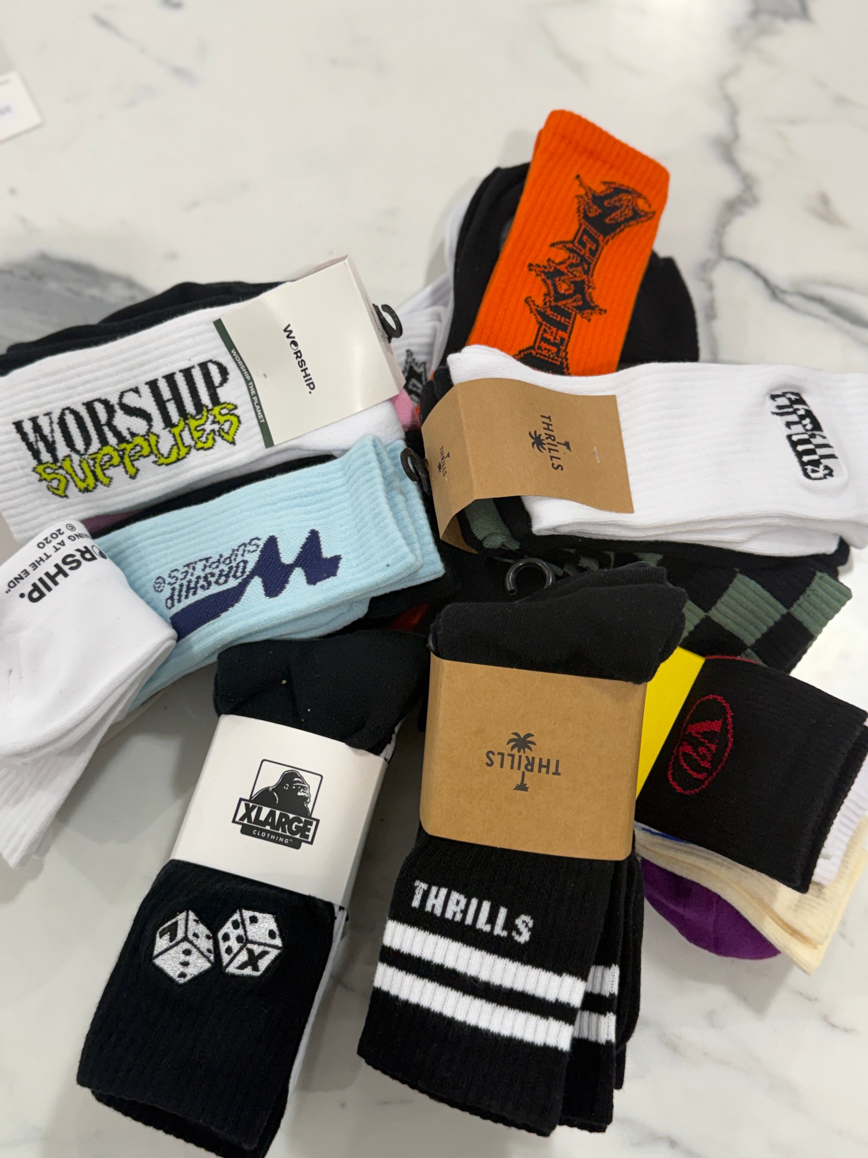 DOMINATION SOCKS 3PK WHITE LILAC BLACK
