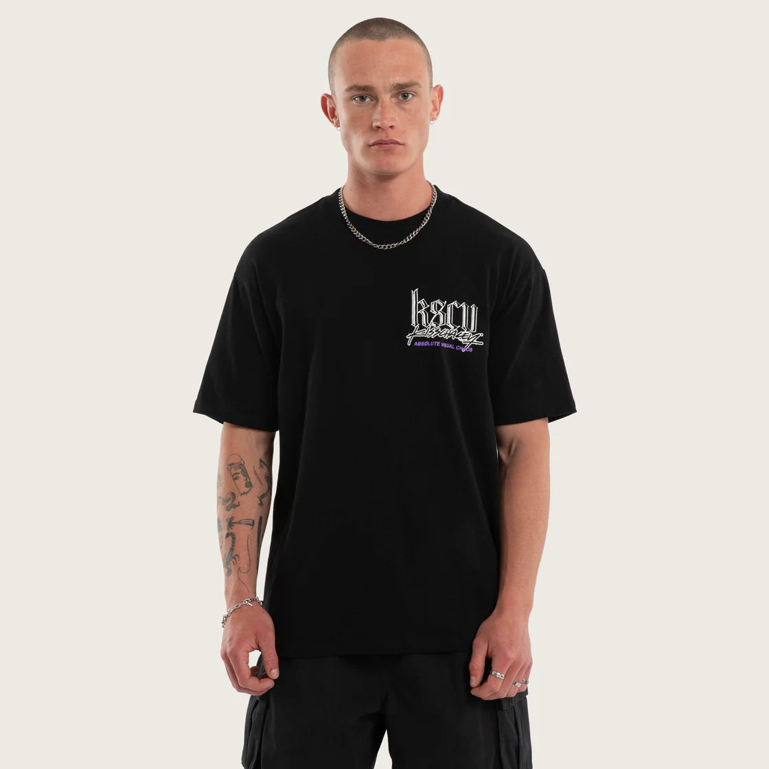 The Absolute Box Fit Tee in Jet Black is designed in a wide and straight fit. Designed from midweight 100% Cotton and finished in a silicon soft wash for added comfort.
