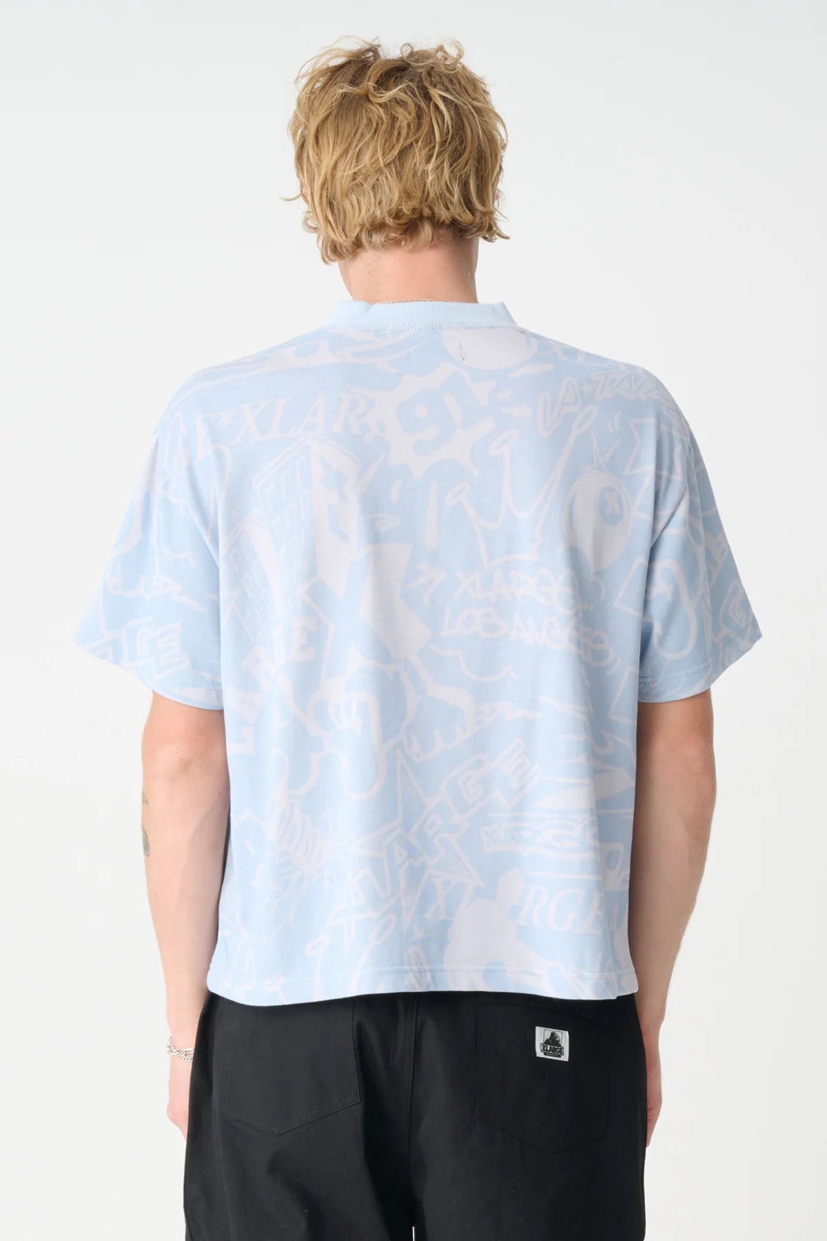 The Allover Gorilla Fit Tee in Dusty Ice is a slightly cropped short sleeve tee in our new boxy fit. Constructed from a heavyweight carded cotton jersey, this tee features elevated prints and premium trims.