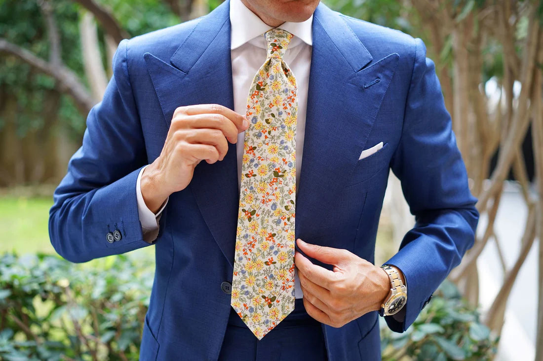 OTAA’s Belle Danser Floral Tie will imbue your tailored looks with timeless elegance. Beautifully detailed with a floral pattern, the Delle Danser Floral Necktie adds an artistic accent to sophisticated formal looks. The medley of yellow, pink, green, orange and blue hues sit atop a white canvas in an intricate floral design. The outlandish style of this necktie is met with a high-quality presence through its handcrafted plush cotton features. Wear the Belle Danser Floral Tie to bring an aspect of flamboyance to your evening wardrobe. Designed exclusively by the Brothers at OTAA.