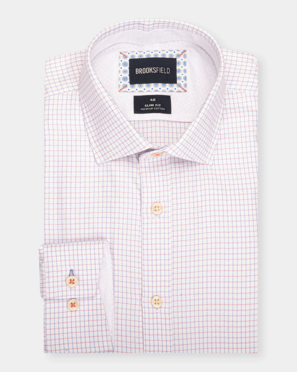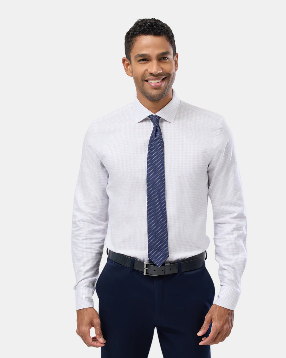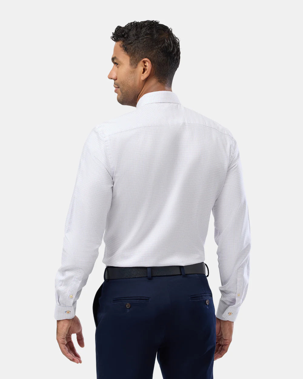 HERRINGBONE CHECK SLIM FIT DRESS SHIRT WHITE