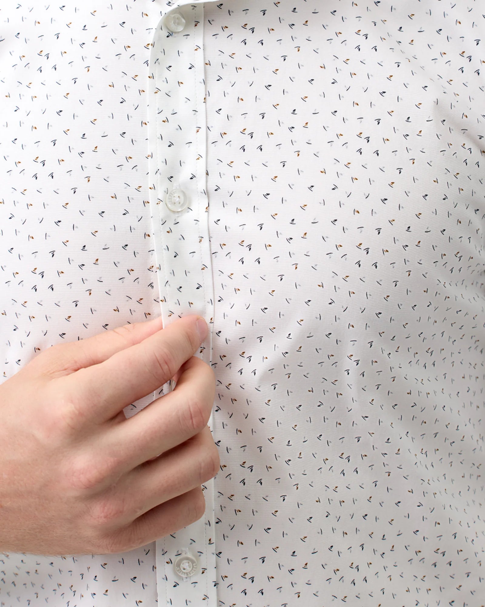 NARROW SPREAD COLLAR CONVERTIBLE ROUNDED CUFFS WITH ADJUSTABLE BUTTONS PLACKET WITH BRANDED BUTTONS REGULAR FIT |