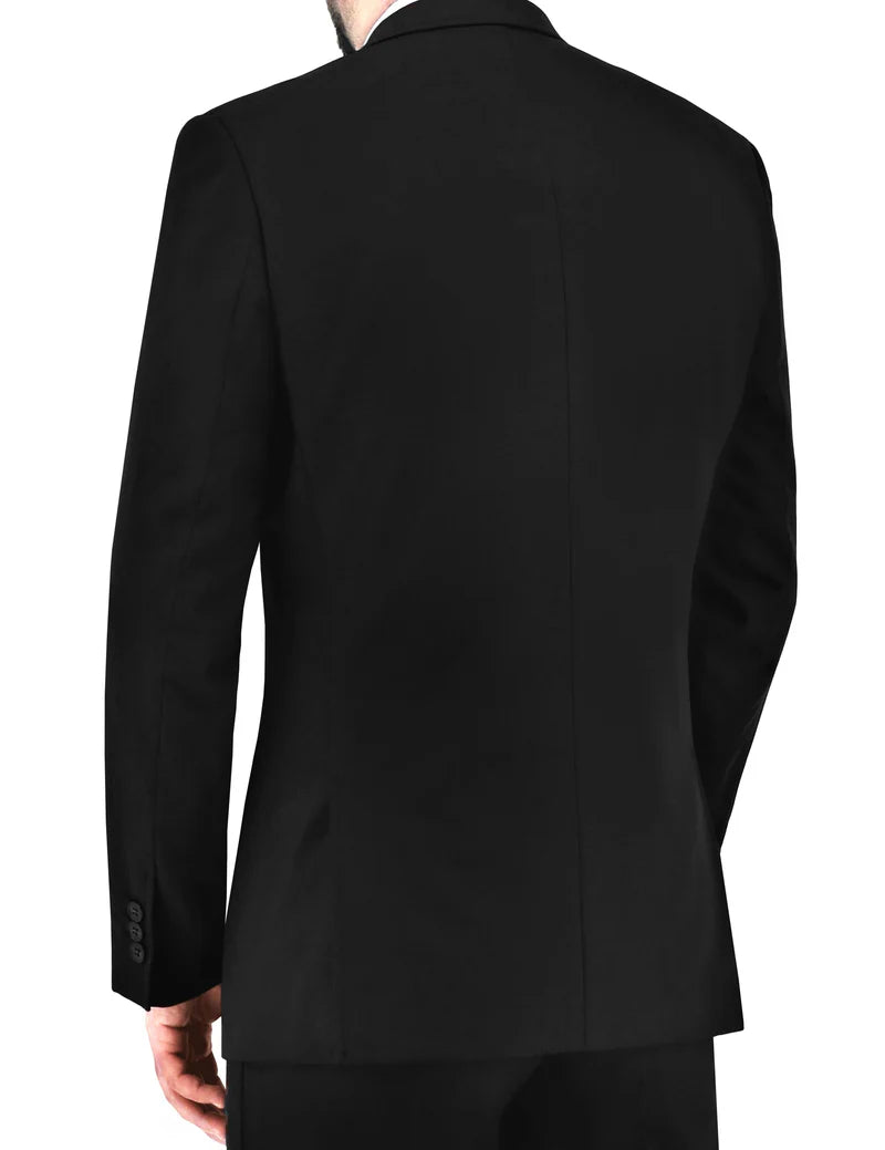 There's nothing that says classic like a crisp black suit. This timeless slim fit jacket features a notch lapel with a removable pin, slanted flap pockets for a streamlined design, and twin vents at rear for ultimate comfort.