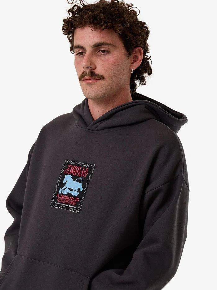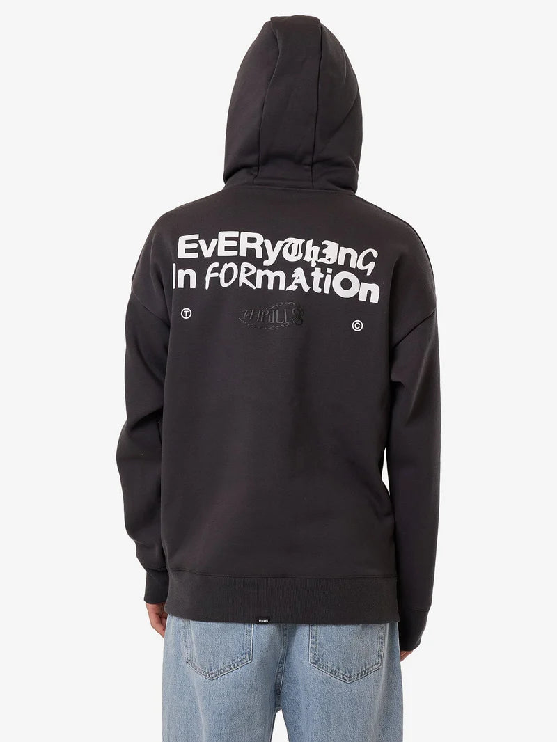 Stay cosy and stylish with the Chain Of Formation Slouch Pull On Hood in Dark Charcoal. Made from a premium blend of brushed fleece, this hoodie combines warmth and comfort with a relaxed, slouch fit and extra room through the shoulders and body for easy movement. Featuring bold graphic details on the front and back for that authentic, unmistakable Thrills appeal.