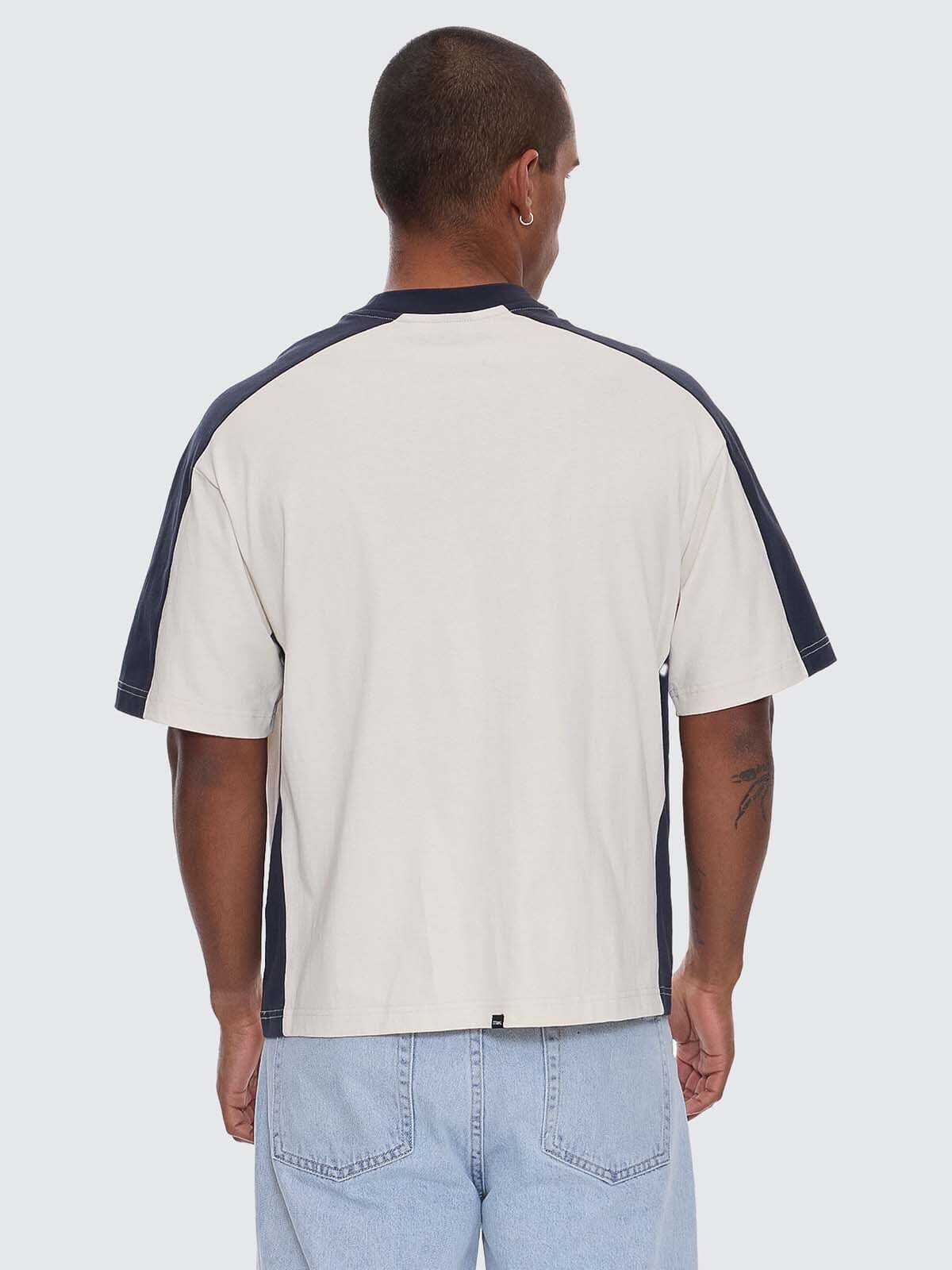 Keep it clean and modern with the Fusion Panel Box Fit Oversize Cropped Tee in Heritage White. Made for movement and everyday comfort, this top pick from our oversized tee Australia collection is crafted from heavy-wearing cotton jersey, delivering that wide, boxy silhouette with dropped shoulders and a cropped cut that sits right at the waistline. Finished with iconic Thrills branding on the chest, this streetwear t-shirt Australia staple offers edge and versatility, perfectly pairing with relaxed denims or baggy cargo shorts for extra volume.