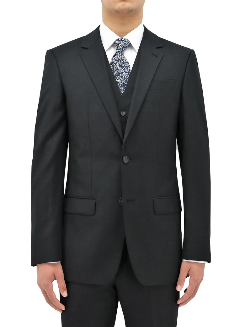 The Michel Charcoal 106 Wool Suit Jacket is a comfort fit single-breasted jacket with a plain charcoal pattern, flap pockets and a notch lapel.