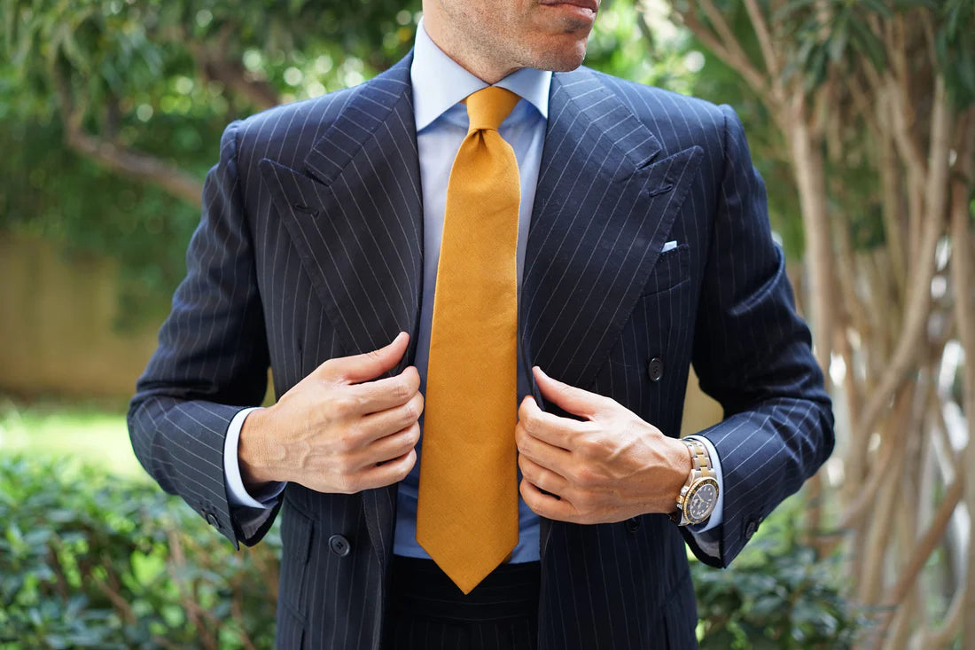 The Brothers at OTAA designed this Mustard Yellow Slub Linen Tie in an old dusty art studio. They had to share the space with a monk who spoke sutras to them while they worked. It was on one auspicious night, when the wind was howling wildly, the monk walked over their canvas and looked them in the eye. He spoke no words but the brothers knew what he was thinking: “This Mustard Yellow Slub Linen Tie is the best damn thing I’ve ever seen. Your work here is done now." It had taken them 5 years.