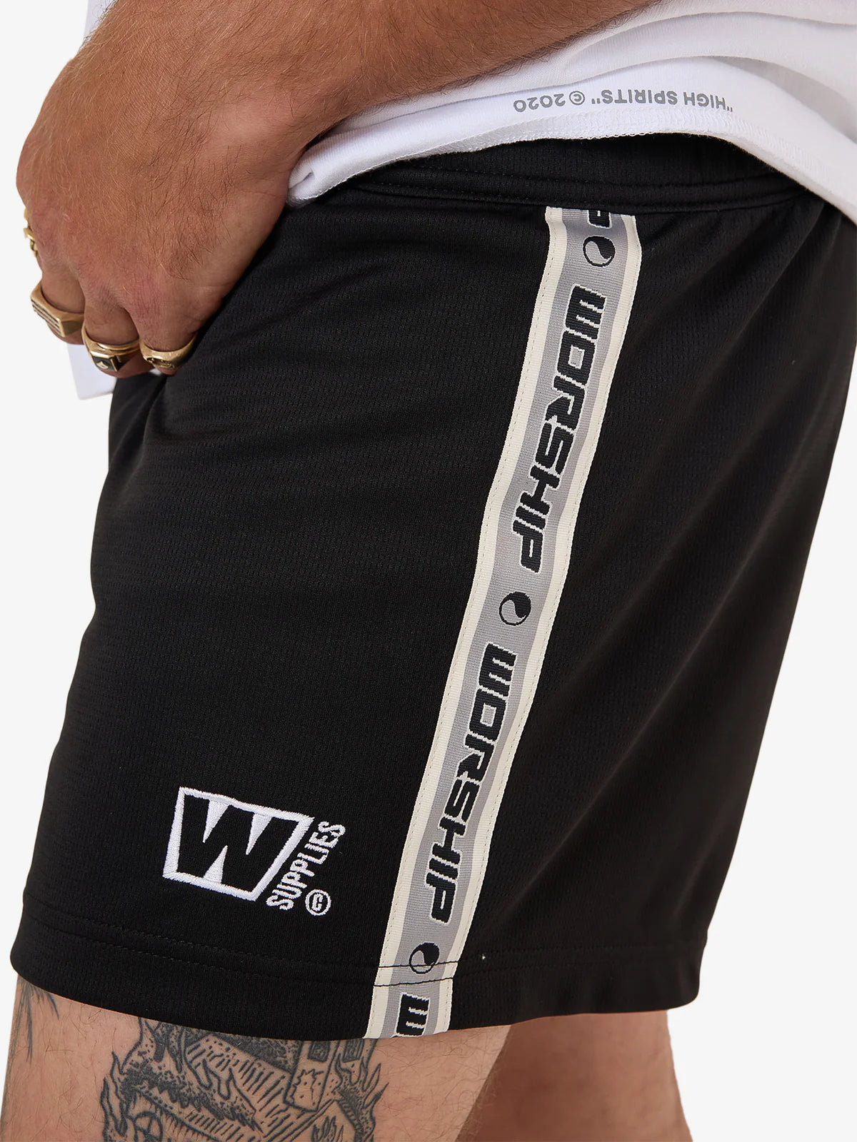 - The Pacer Running Short in Black keeps things light, fast, and low-key with a clean silhouette and sport-stretch fit. Made from 100% polyester, these men's running shorts are breathable, quick-dry, and perfect for active sessions or streetwear layering. Finished with a tonal logo hit on the leg and a shorter, above-the-knee length for exceptional breathability.