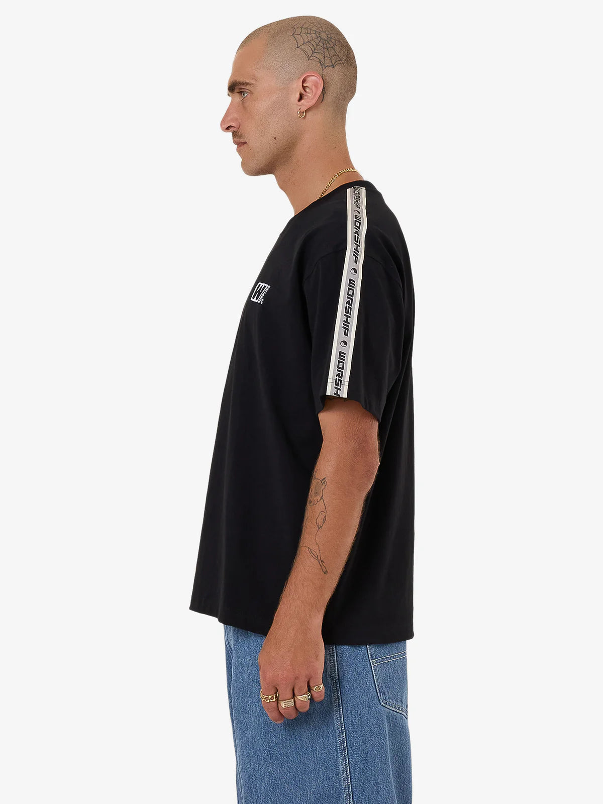 - Built for everyday comfort, the Pacer Tee in Black keeps it clean and minimalist with a subtle touch of street edge. Made from 245gsm dry hand cotton jersey, this black graphic tee features a roomy, relaxed fit for easy movement and a ribbed crewneck for a polished finish. Designed with contrast graphic details for an understated style that works well with men's pants, denim jeans, and baggy cargo shorts.