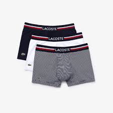 Crafted in comfortable soft stretch cotton which offers breathability and freedom of movement. These must-haves feature a three-tone waistband with the Lacoste brand name. Pack comprising two pairs of plain-coloured trunks and one pair with nautical stripe print.