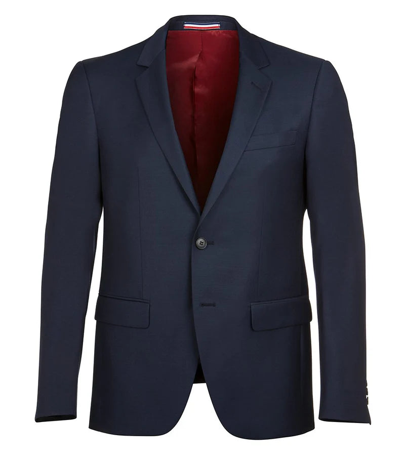 Made from 100% Australian Merino wool, this slim fit jacket features a single breasted closure, flap pockets and a notch lapel.