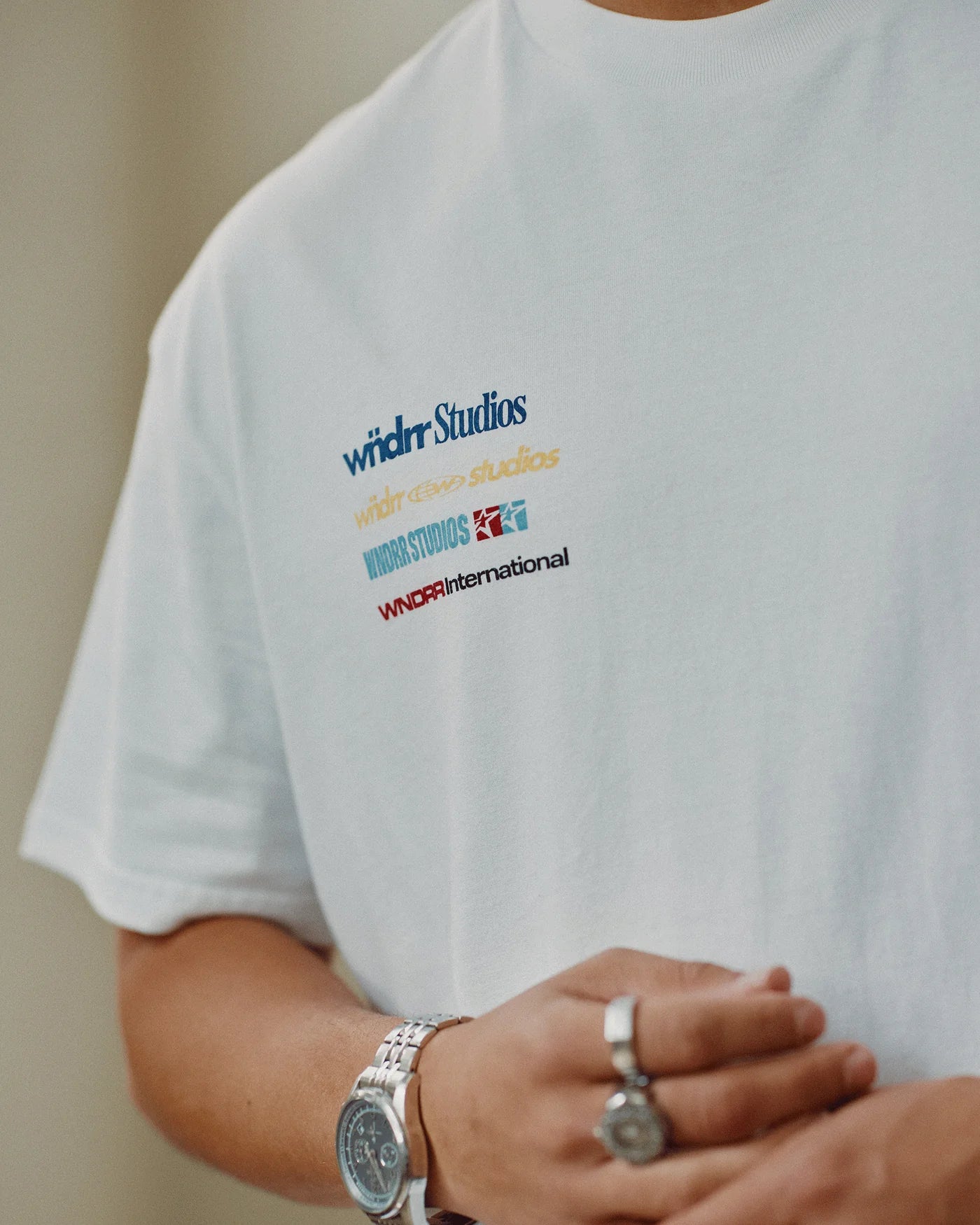 Sponsored box fit tee in white.