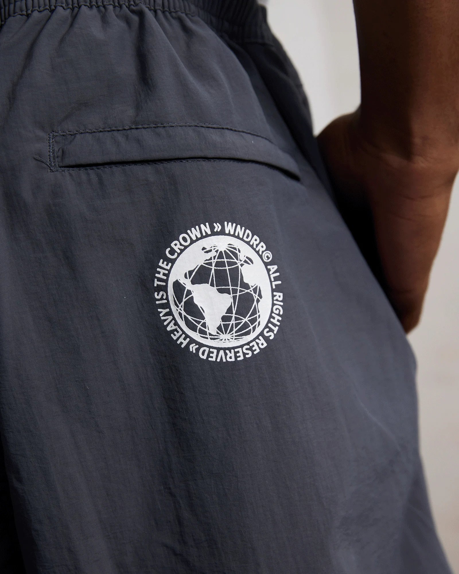 - Right rubber patch branding to the back left of the short
