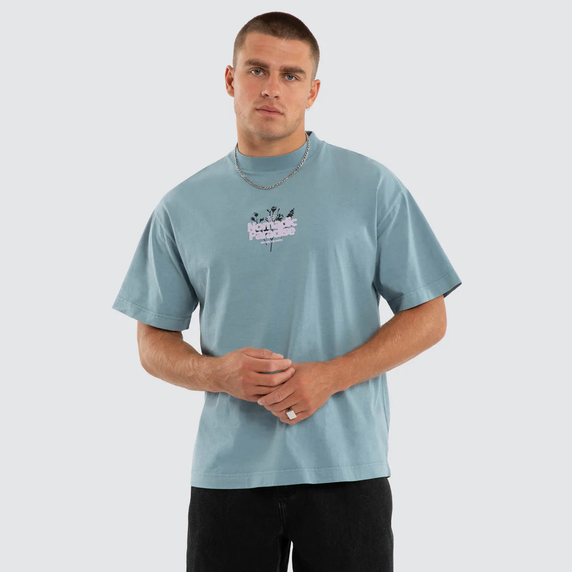 The Tides Street Tee in Provincial Blue from Nomadic Paradise is a standout piece. This tee is designed with a box fit, dropped shoulder, and high thick neck ribbing for a relaxed look.